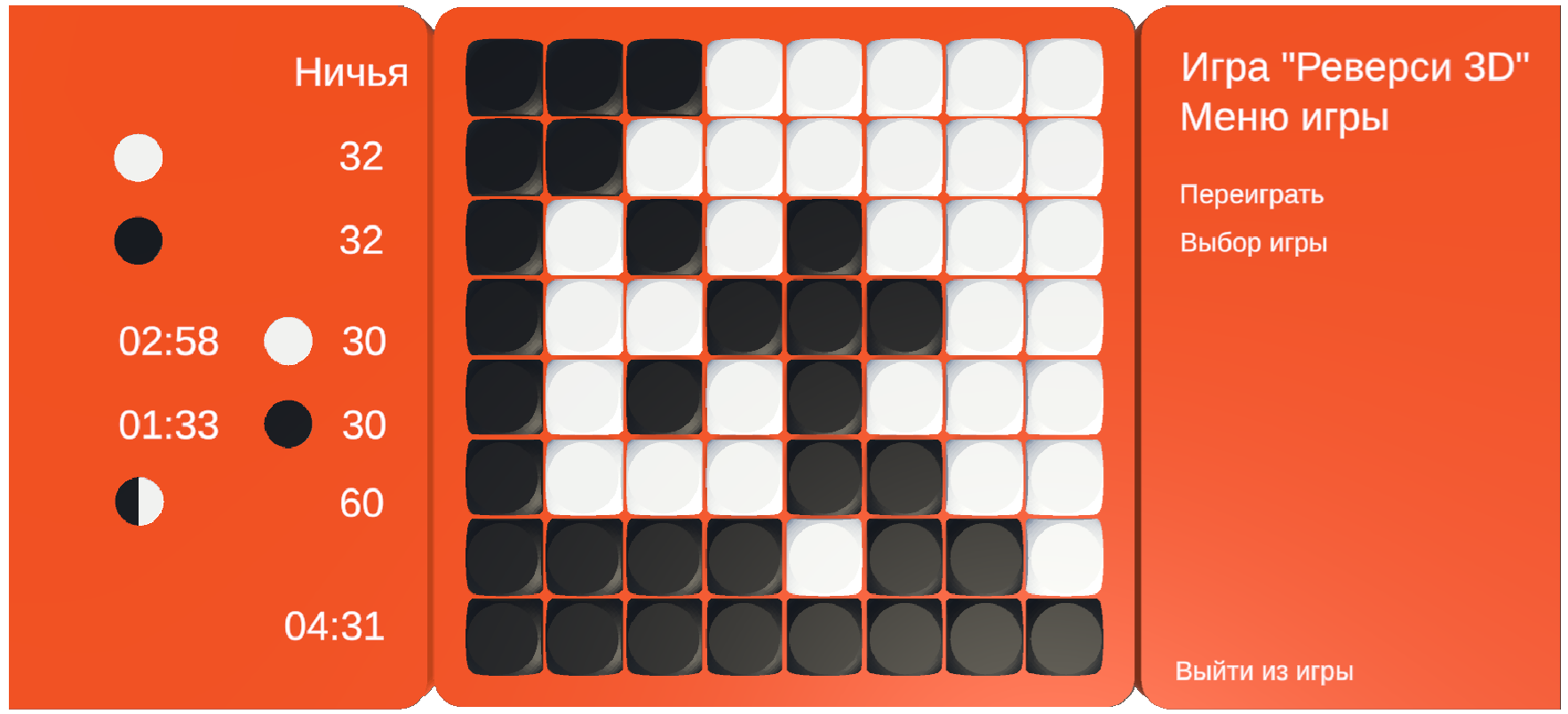 I really like logic games and puzzles. And I remembered the game Othello on NES (Reversi). And I decided to try to implement them in full 3D. You can play with a friend (one on one on the same PC) and against the AI. The AI's difficulty level doesn't change yet, and it's specifically designed for beginners and those who want to remember this game. Enjoy the game.